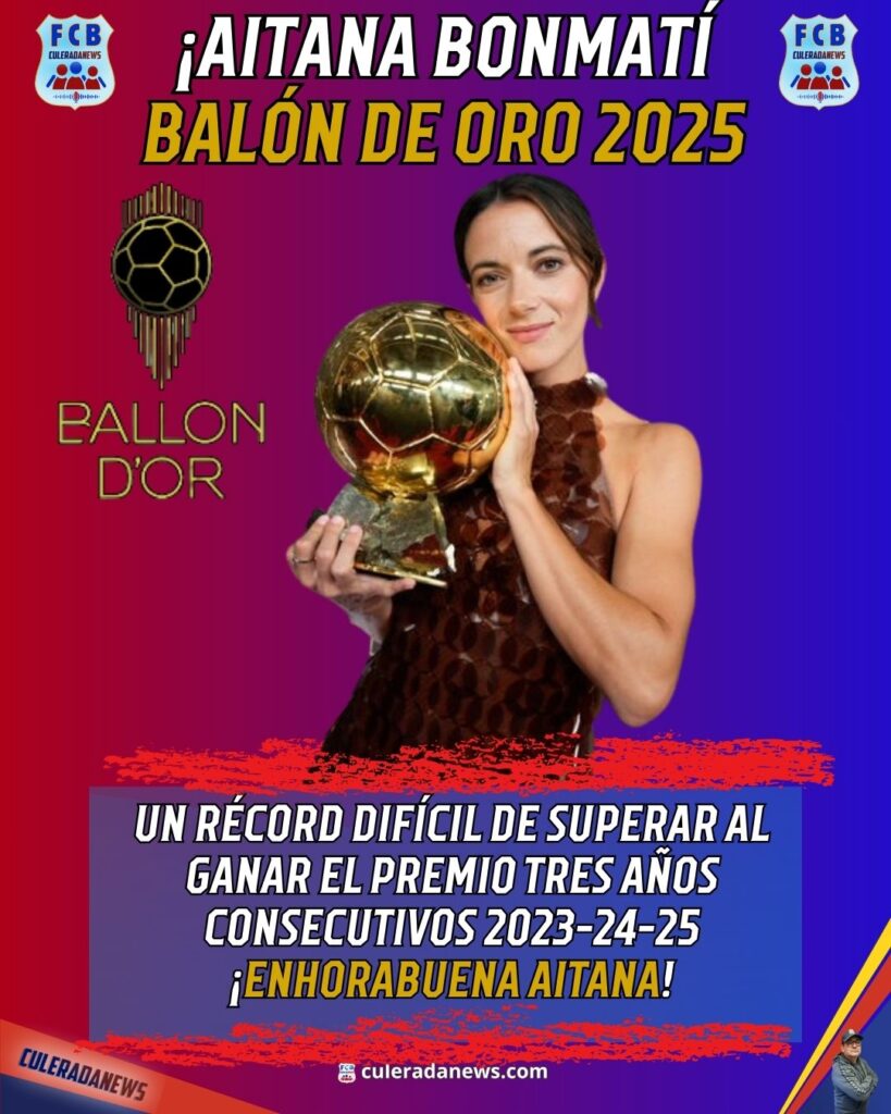Aitana sigue haciendo historia al conquistar su tercer Balón de Oro consecutivo, tras haberlo levantado en 2023 y 2024. Su magnífica temporada, en la que ganó los tres títulos nacionales y fue subcampeona de Champions y de la Eurocopa, la situaba como una de las grandes favoritas al galardón.