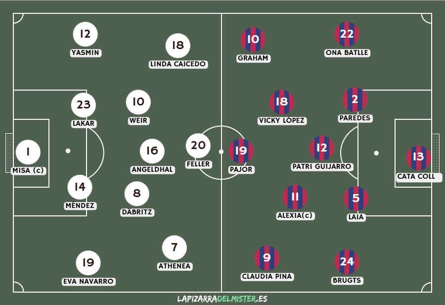 - Incidencias: Lesión de Laia Aleixandri (minuto 17), sustituida por la canterana Aïcha Camara, quien cumplió con nota en un escenario de máxima exigencia.